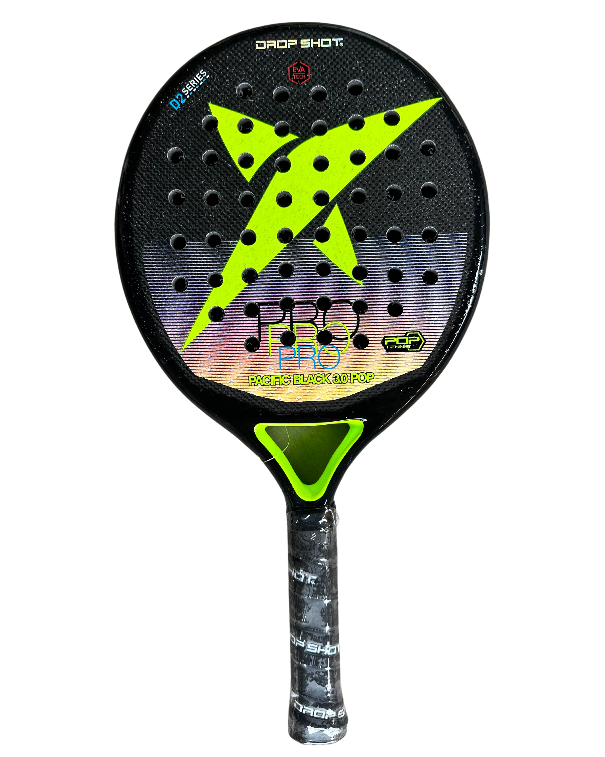 The eagerly awaited All-New Pacific Black 3.0 28mm hybrid is the upgrade of the Pacific Black 2.0. Patented cN Innegra Carbon fibers provide a larger sweet-spot and maximum stability on a 28mm profile paddle racquet. Our unique Elastum EVA Pro Memory Core provides maximum feel and control. Full 100% cN Innegra Carbon Frame. EVA Pro Memory Core. Newly Released 3D SPIN Contour Face plus added SuperGrip Surface for Maximum long-lasting Spin. Length: Extended (18.5 inches) - Weights: 320-325 grams (Ultra-Light), 330-335 grams (Standard) and 340-345 grams (Plus). Note: Ultra-Light option recommended for non-power players. Balance: Middle/Head Power: 8.0 Control: 9.5 Stability: 9.0 Maneuverability: 9.5