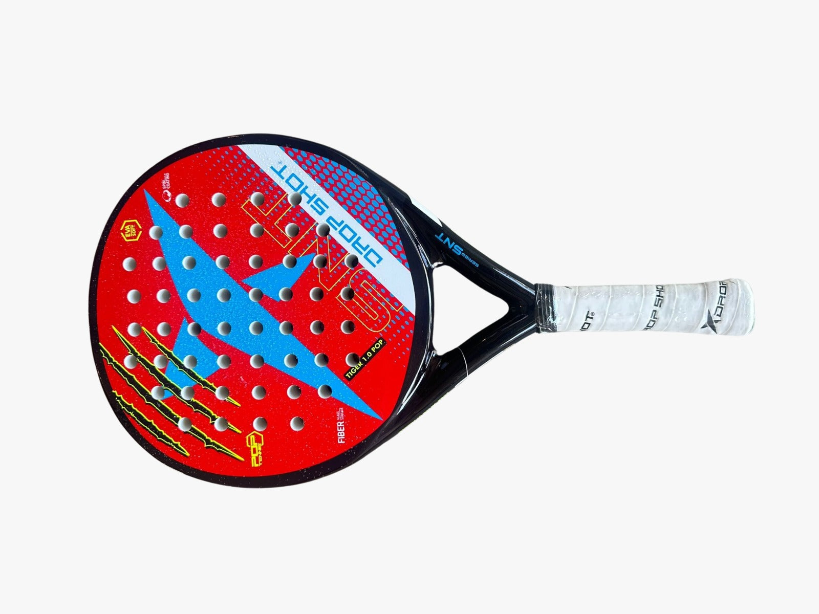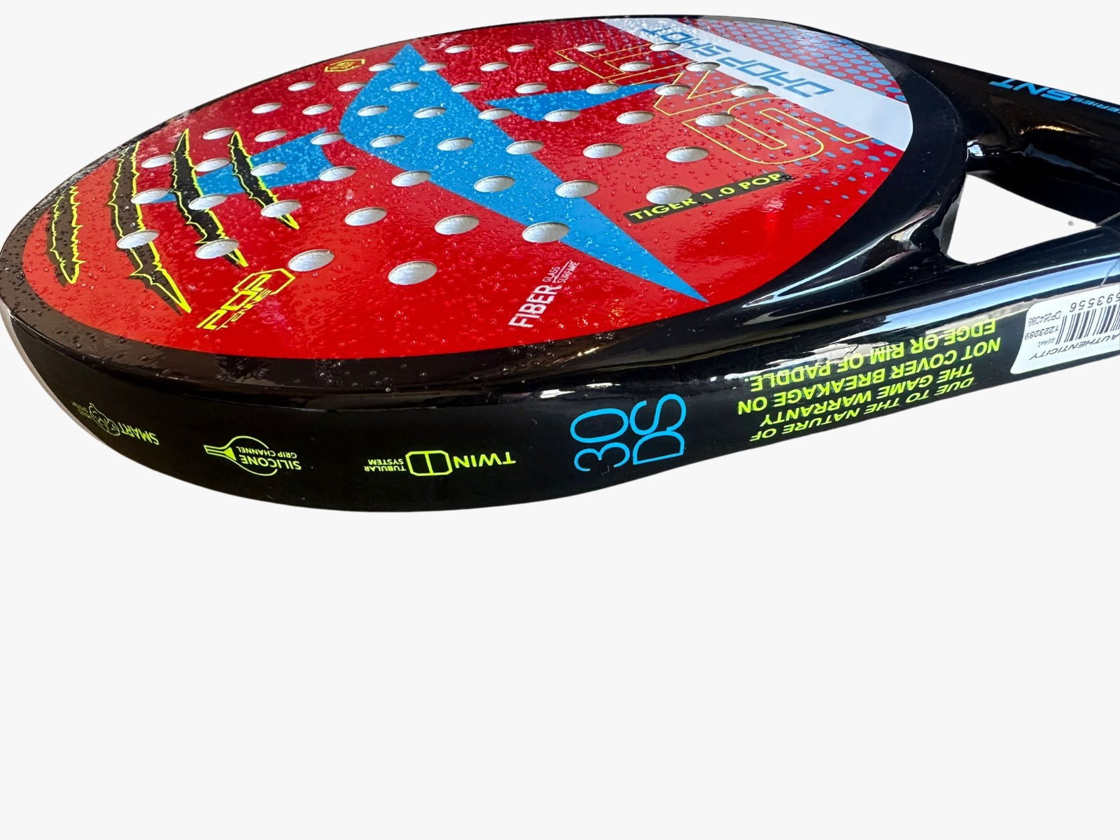 The Tiger 1.0 Pop is the eagerly awaited upgrade of the popular Tiger Pop. New 30mm profile for increased stability and larger sweet-spot on off-center shots. With our patented DS Fiber threading the control to power ratio is matched only by its feel. Elastum EVA Soft Core provides a softer feel for maximum comfort and shock absorption. SuperGrip Glass Surface provides plenty of spin for better control. Small grip adjusts to most hands. Available weights: 330 grams (Light), 340 grams (Standard) and 350 grams (Plus). Length: 18.5 Inches (Extended) Grip: 4 1/4 (Small) Balance: Mid-Balance Power: 8.5 Control: 8.5 Stability: 8.5 Maneuverability: 9.0 Recommended for Beginners and Intermediate players who are looking for an affordable and extremely player friendly paddle with most of the qualities of high-end professional paddles. Note: Zip-Cover not included