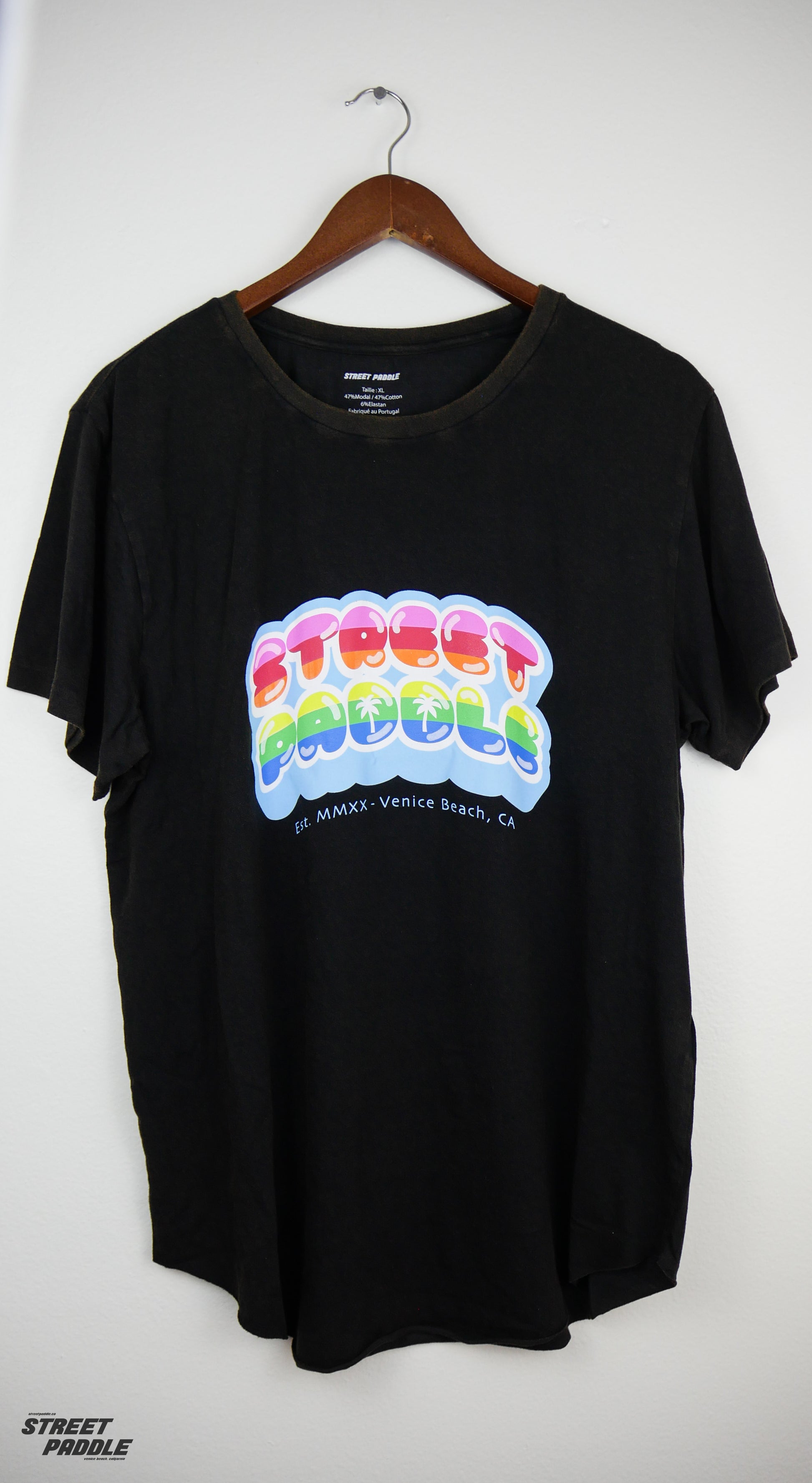 Softest cotton t-shirt ever. Faded dark brown with bubble letters font.